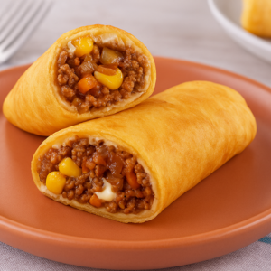 Patinho moído ao molho de tomates, com cenoura, milho, cebola caramelizada e requeijão cremoso, dentro de uma crepioca leve e saudável. Suculenta e irresistível Informações Nutricionais (100g): 133 Kcal - 8g Proteínas - 14g Carboidratos
