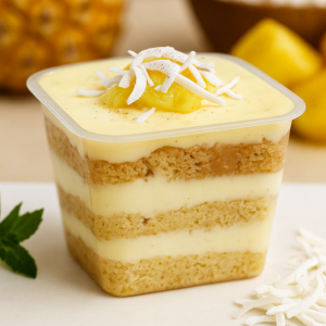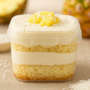 Creme de Ninho, Abacaxi e Coco: Sabor refrescante e irresistível! Camadas de pão de ló branco fofinho, recheadas com creme cremoso de leite Ninho e lascas de coco, combinadas com abacaxi picado. Uma explosão tropical que vai conquistar seu paladar!