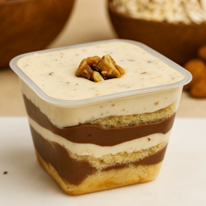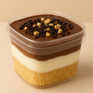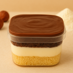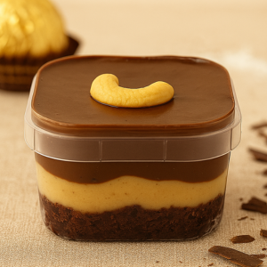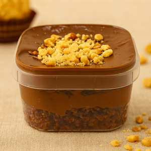 Creme Crocante e Chocolate Nobre: Sabor e textura em harmonia! Pão de ló branco recheado com creme de praliné (crocante de castanhas caramelizadas) e um delicioso creme com sabor do famoso chocolate Alpino. Um verdadeiro prazer em camadas!