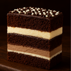 Uma combinação dos sonhos: massa fofinha de chocolate, recheada com brigadeiro cremoso e um delicado creme belga suave, finalizada com o sabor inconfundível do Kinder Bueno. Uma fatia que une intensidade e delicadeza em cada mordida.