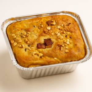 Torta Low Carb de Frango com Bacon e Cheddar – Sem Glúten: Sabor e crocância irresistíveis! Massa leve feita com farinha de amêndoas e castanha-de-caju, recheio cremoso de frango, bacon crocante e cheddar derretido. Finalizada com castanha triturada para um toque especial. Sem glúten e cheia de sabor! Informações Nutricionais (porção150g): 350 kcal/ 25g proteínas/ 7,4g carboidratos