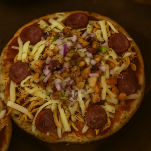 Pizza Low Carb Fit Supreme – Frango, Calabresa e Bacon: Uma explosão de sabores em versão saudável! Massa especial à base de frango, recheada com molho de tomates, frango desfiado, mussarela, calabresa e bacon. Finalizada com cebola roxa e orégano. Sem glúten, sem farinha, low carb e incrivelmente saborosa! Informações Nutricionais (porção150g): 299 kcal/ 32g proteínas/ 4,2g carboidratos