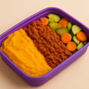 Patinho moído suculento e bem temperado, acompanhado de purê cremoso de batata-doce + abobrinha e cenoura salteadas na manteiga. ? Refeição saudável, nutritiva e cheia de sabor!Informações Nutricionais: 329 Kcal - Proteínas 23g - Carboidratos 28g