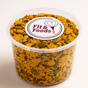 Grãos e Sementes Nutritivas: Crocrância e nutrição em cada mordida! Nossa granola salgada é feita com grãos selecionados: linhaça, chia, gergelim, sementes de girassol e abóbora, além de flocos de milho levemente temperados para um sabor irresistível. Rica em fibras, proteínas e gorduras boas, é perfeita para saladas, sopas ou como snack saudável. Zero glúten, sem conservantes e cheia de benefícios para sua saúde!