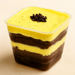 Chocolate e Fruta Tropical: A união perfeita do azedinho com o doce! Pão de ló de chocolate com creme leve de maracujá e um toque irresistível de creme de chocolate caramelizado. Uma sobremesa sofisticada e cheia de sabor!